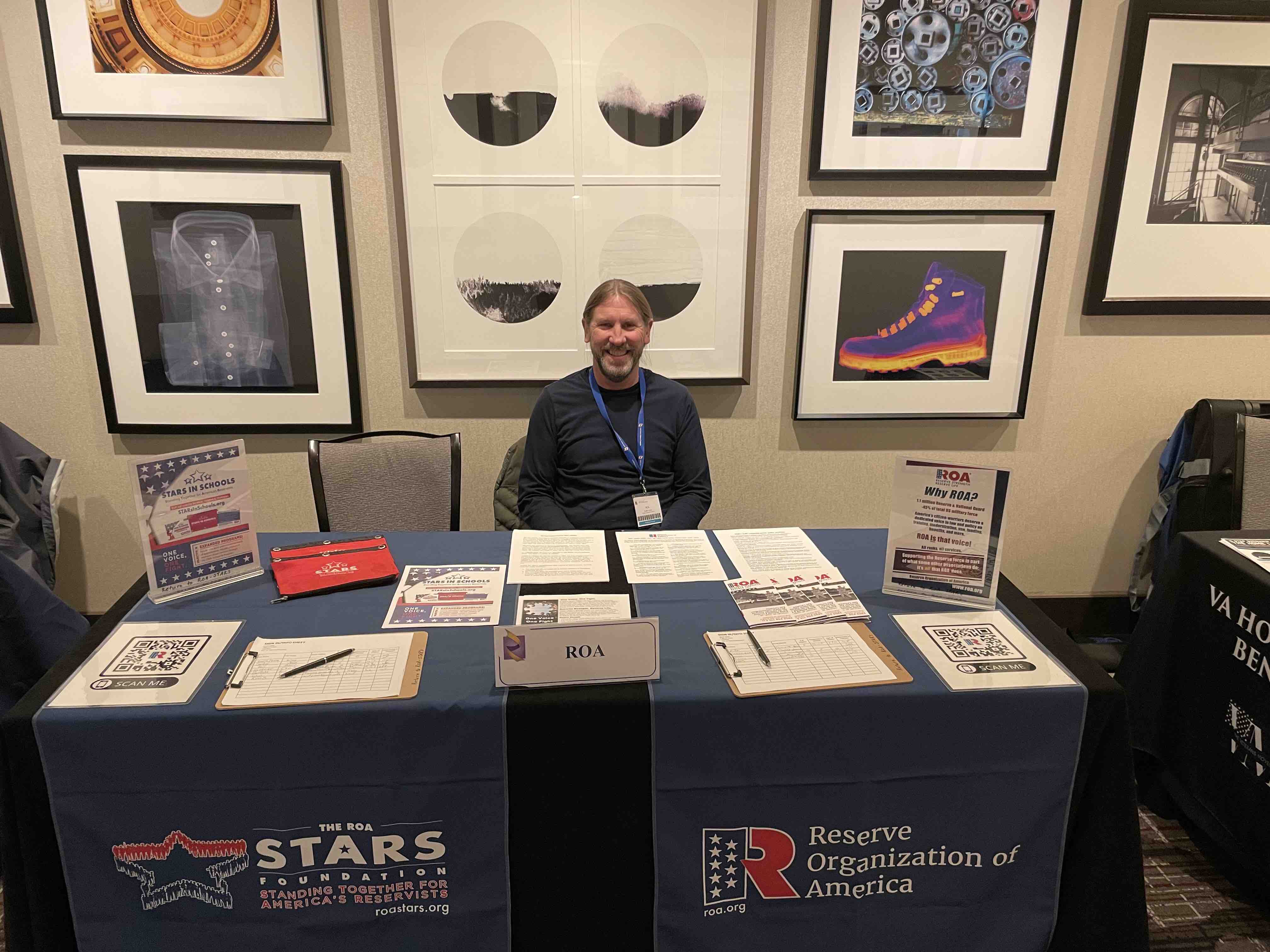 The Air Force Reserve hosted a Yellow Ribbon event from Feb. 16 - 18, 2024, in Denver, Colorado. Retired Lt. Col. Alan Flolo, from the Department of Colorado, manned the ROA table (pictured above), entertained deployers from more than 30 installations with Westover leading the way in attendance. The Yellow Ribbon Event included more than 70 personnel providing many different resources and information to deployers and their families. Flolo distributed 30 STARs in Schools kits to help deployers formally notify their childrens' schools that a family member is about to be, or is currently, deployed. Kudos to Scott Russel, Anne Groskreutz, Margaret Cope and several key ROA members on their efforts in making this event a success.