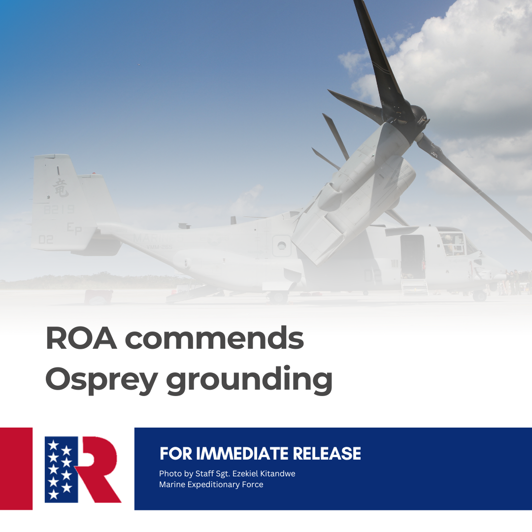 The Reserve Organization of America commends the decision made Dec. 6 to ground all Osprey CV-22 aircraft pending operational safety investigations. The decision was announced just one week after ROA wrote to Secretary of Defense Lloyd J. Austin calling for the aircraft’s immediate grounding. “ROA thanks the secretary of defense, and the secretaries of the Air Force, Navy, and Marine Corps for grounding the Osprey,” said ROA’s executive director, retired Army Maj. Gen. Jeffrey E. Phillips. “Ensuring the safety of this aircraft, and future tiltrotor capabilities, is vital to military readiness and the lives of our precious servicemembers. ROA looks forward to learning the results of these safety investigations. With their findings, we urge the Pentagon to be transparent with the American people who fund and furnish the crews for this aircraft.” ROA sent its Nov. 29 letter to Secretary Austin in direct response to the aircraft’s fatal crash in Japan, which claimed the lives of at least seven, and likely all eight, of the Air Force crew. “How many more young warriors will die and be injured,” Phillips wrote, “some horribly, before we admit the problem and do the right thing?” To date, 16 Ospreys have been damaged beyond repair in accidents that have killed more than 60 people. Four crashes killed 30 people during testing from 1991 to 2000. While some crashes have been attributed to pilot error, since the V-22 became operational in 2007, 12 crashes, including two in combat zones, and several other accidents and incidents have killed 33 people. In grounding the Osprey, the Pentagon has at last done right by its men and women in uniform and their families. Any resumption of the Osprey’s use must be prefaced by systemic fixes and not mere training directives to crews, such as we have seen, with disastrous effect. Future decisions regarding the use of this aircraft must be guided by a recognition that tiltrotor technology, while beguilingly advantageous, has yet to prove reliable.