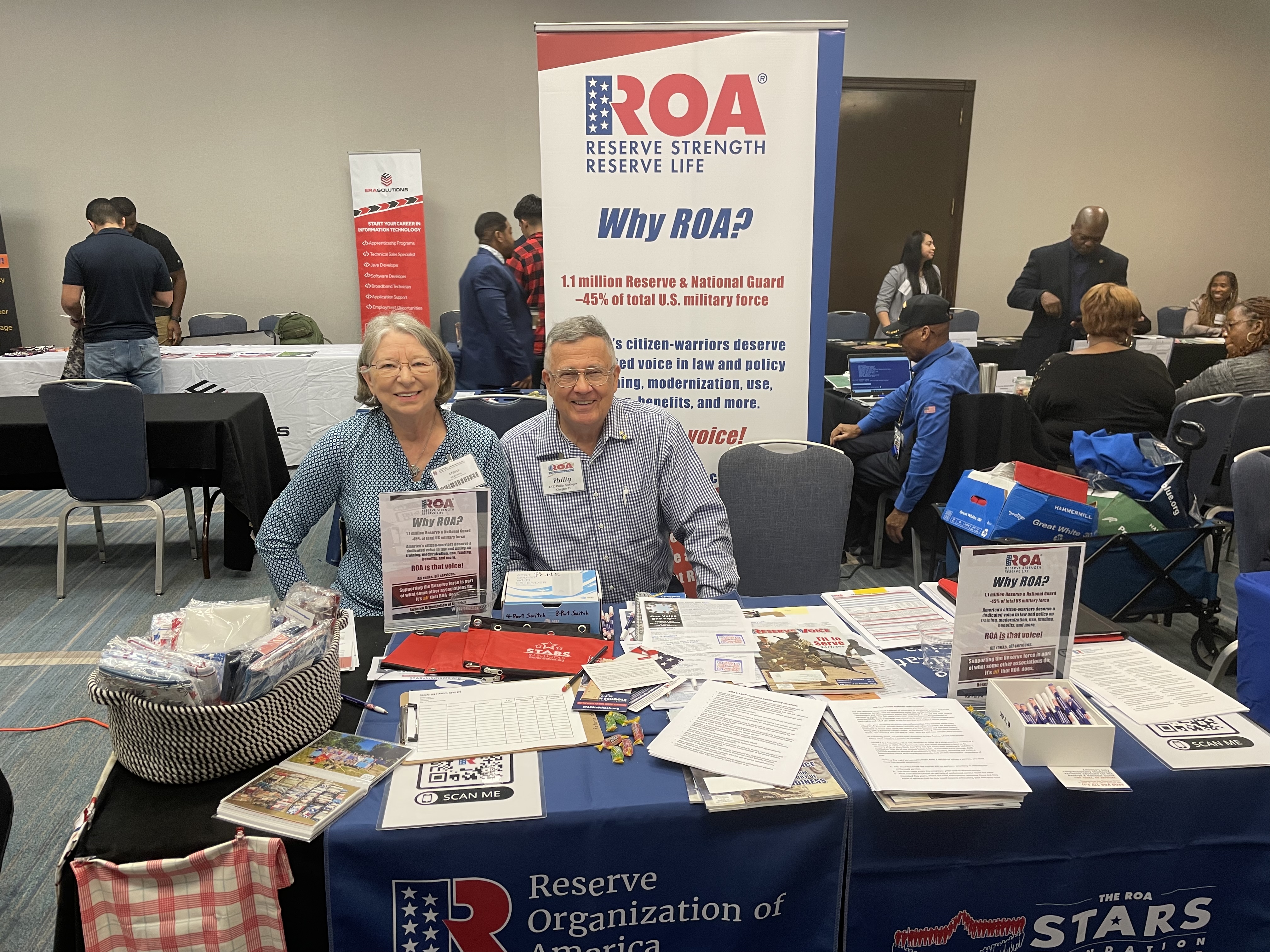 Denise and Phillip Sickinger, Texas Chapter 33 (Houston) represented ROA at the Army Reserve Yellow Ribbon event Dec. 9, 2023. There were approximately 350 attendees and they distributed 23 STARs schoolkits. Denise was also able to donate 48 pillowcases to deployers and their families.