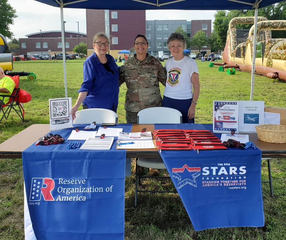 The Flying Vikings Chapter members retired Lt. Col. Anne Jones, Chapter President Col. Gia Wilson-Mackey and Dr. Cathy Luke of the STARs program (seen in photo above) proudly represented ROA at the event taking the opportunity to engage families and the community. The Flying Vikings Chapter trio distributed information on ROA and its role in the support of the Air Reserve Component members was given out as well as STARs packets.