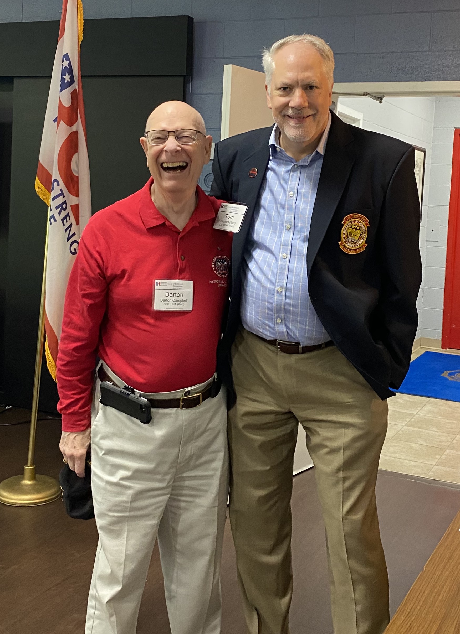 ROA “Virginia Gentlemen” Col. Barton Campbell, USA (Ret.) (left) and Department of Virginia President Col. Tom Hueg, USAF (Ret.) stop to get a photo during the department convention.