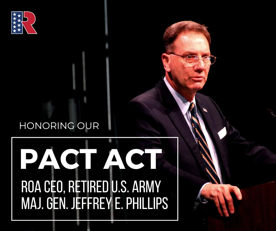 WASHINGTON, DC, USA, August 3, 2022 /EINPresswire.com/ -- In a momentous win for veterans suffering from the effects of battlefield toxicity, such as burn pit fumes that have crippled and killed thousands, the Senate on Tuesday reconsidered and passed the Sergeant First Class Heath Robinson Honoring Our PACT Act by an 86-11 margin, establishing service connections and the right to VA care for 23 cancers and maladies now linked to such toxins. “The Reserve and National Guard make up 40 percent of the total U.S. military and some 53 percent of the Army,” said ROA’s executive director, retired Army Maj. Gen. Jeffrey Phillips. “The passage of the PACT Act, which the president could sign into law as early as Monday, will mean lifesaving healthcare for our Citizen-Warriors -- men and women who have served shoulder to shoulder with their active duty comrades; they incurred the same risks, performed to the same levels of excellence, won the hard battles, and will get the care they earned.”
