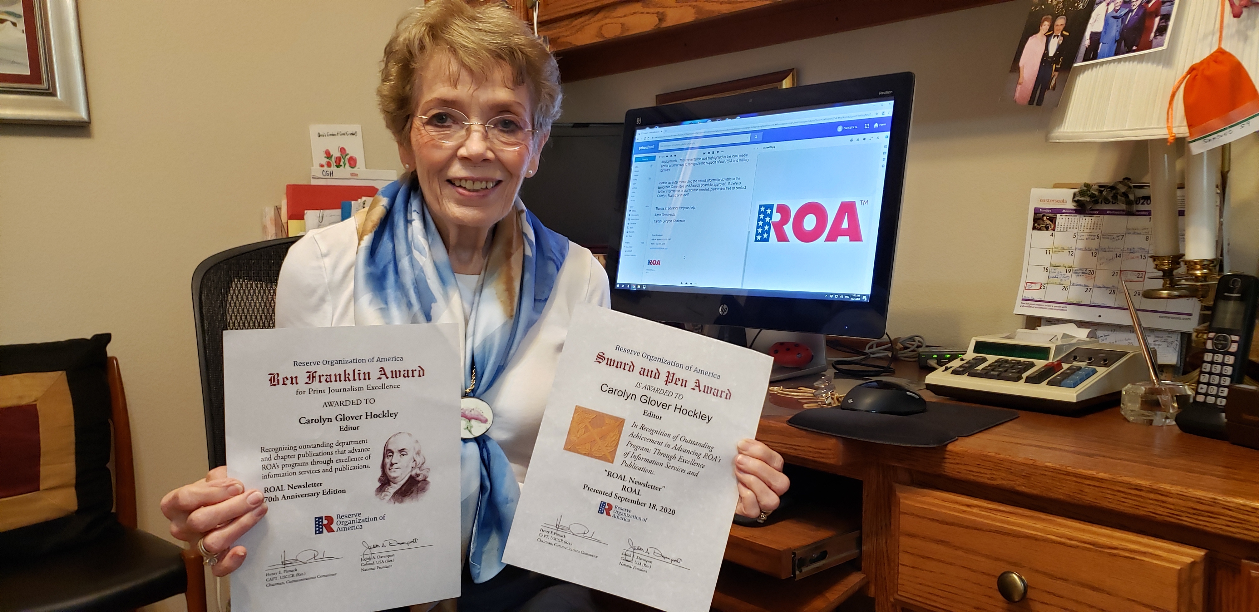 Again, I am touched with being awarded The Sword and Pen Award, and especially The Ben Franklin Award for the ROAL Newsletter 70th Anniversary Edition.