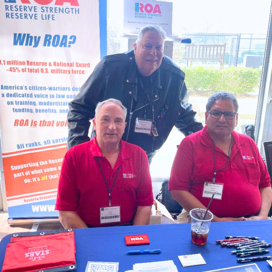Members of the Department of Texas participated in a USAR Yellow Ribbon event in San Antonio, Texas. The event was hosted by the 63rd Readiness Division and had 273 deployers and family members. ROA members gave out 22 STARs in School kits as well as handouts on ROA's legislative priorities and info on the Service Members Law Center. Pictured above are Scott Russell (left), Marc Marin (right), and George Rippel (center).
