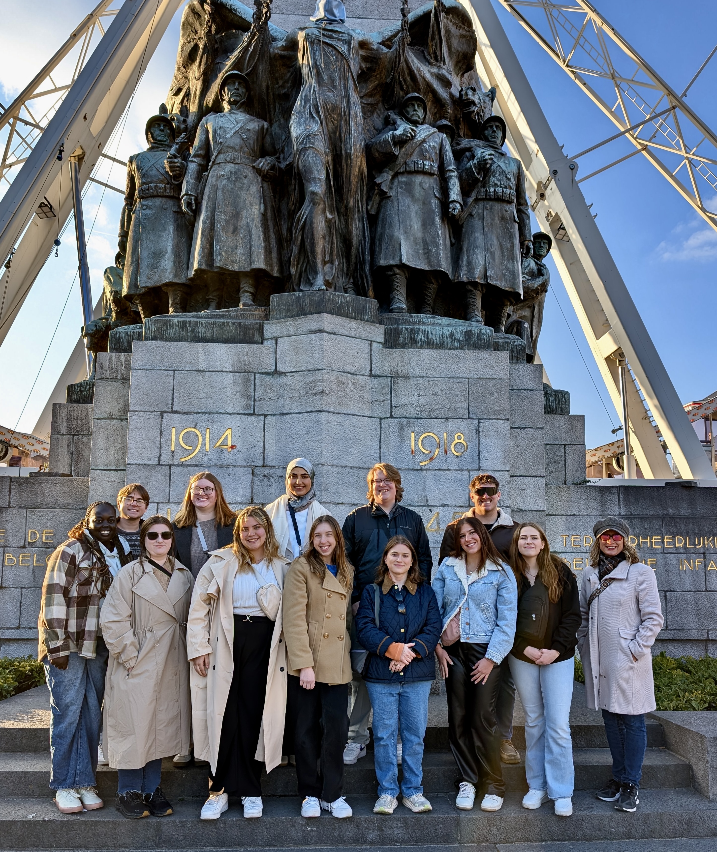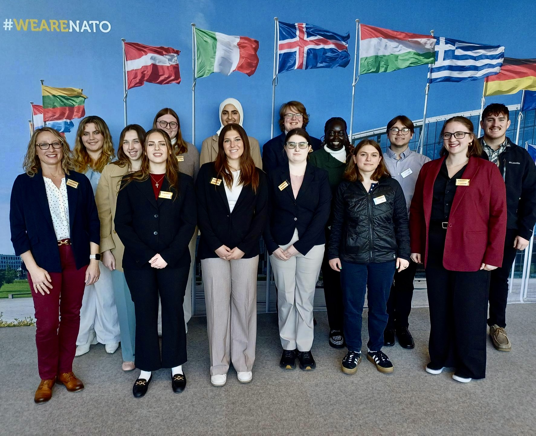 The course provided firsthand experience for students, including several ROTC cadets and reservists, by connecting them directly with public affairs professionals working within global governments. Drawing on her military network, Veil worked with Major General Craig Strong, Director of the Nebraska Military Department and Nebraska Emergency Management, and Captain Henry E. Plimack, USCGR (Ret), Naval Services Section Vice President at the Reserve Organization of America (ROA) to help coordinate visits to key international institutions shaping defense and diplomacy. During the week abroad, students visited the Supreme Headquarters Allied Powers Europe (SHAPE), North Atlantic Treaty Organization (NATO) Headquarters, European Union Council, Belgian Parliament, and the State Department’s European Media Hub. These visits, along with meetings with public affairs officers and foreign officials, gave students an inside look at how communication strategies influence diplomacy, defense, and policymaking at the highest levels.