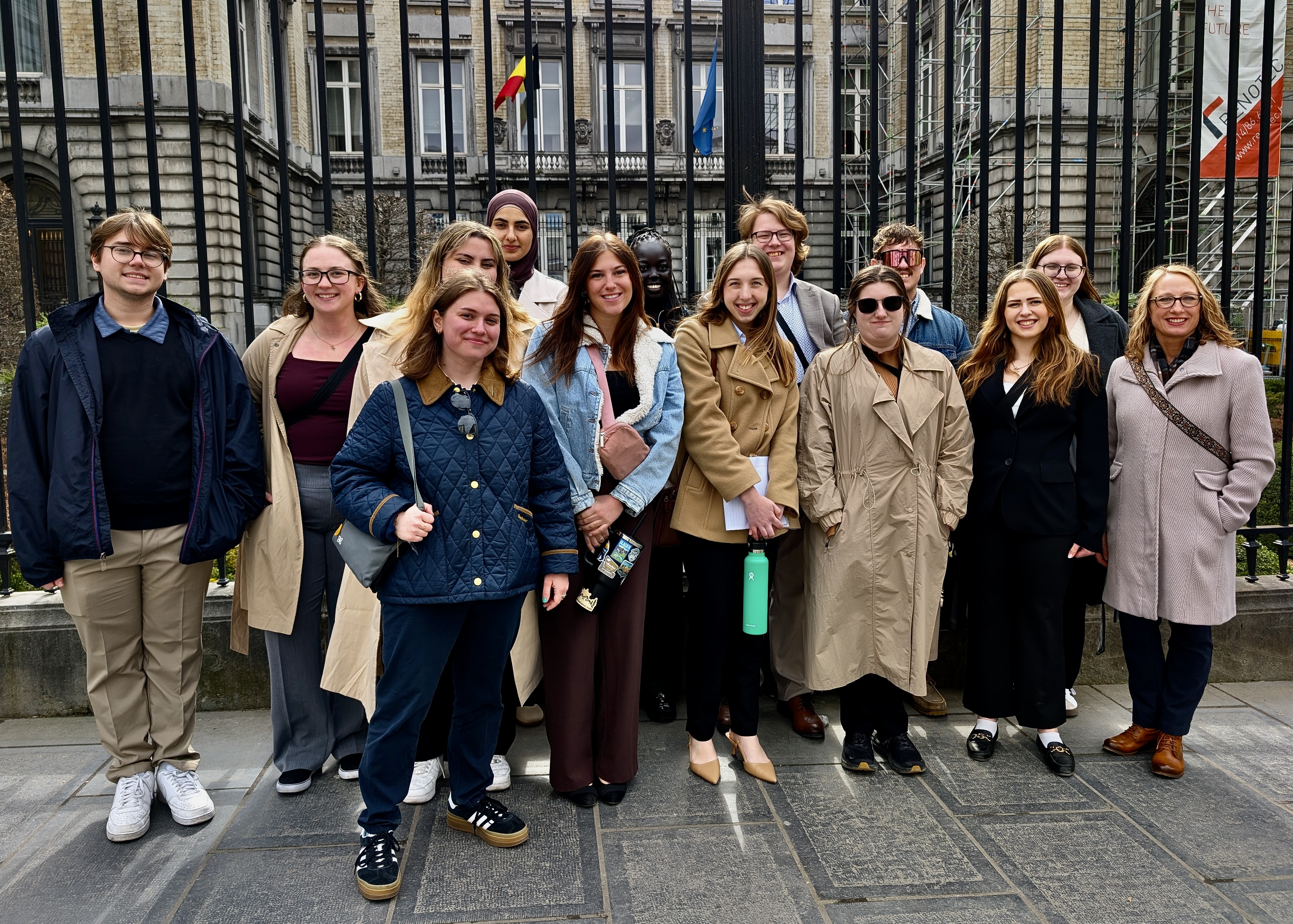 Over spring break, Dr. Shari Veil, Dean of the University of Nebraska–Lincoln College of Journalism and Mass Communications, took students abroad for the first international offering of “Military Public Affairs,” a course she previously taught on campus at Nebraska. This inaugural study abroad program immersed students in the heart of international governance and military communications in Brussels, Belgium.