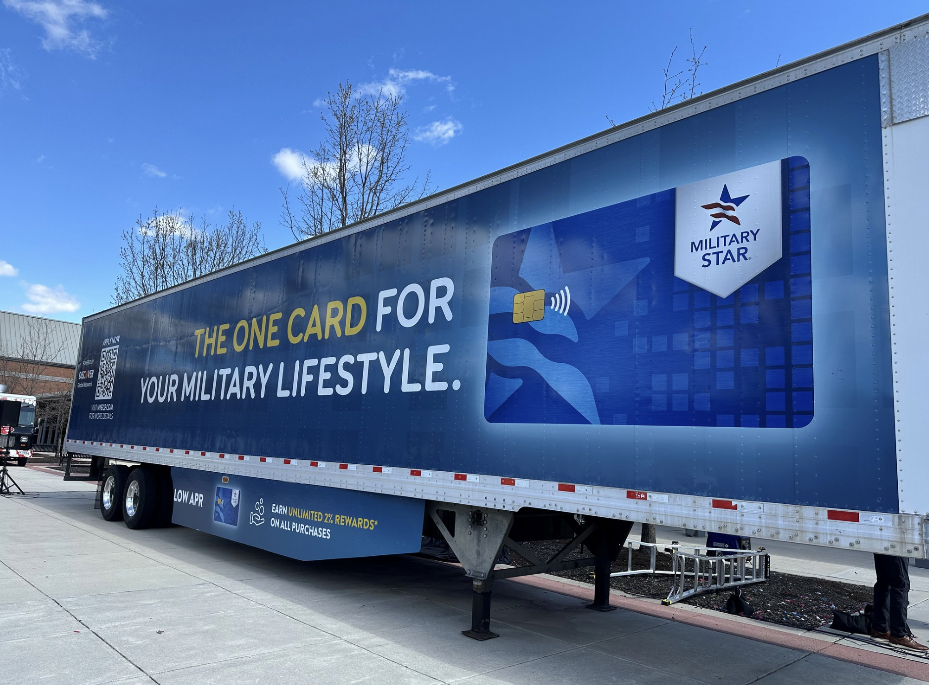 FORT BELVOIR – The Exchange Credit Program celebrated its collaboration with Discover Global Network in a big way—53 feet long, to be exact. Six new MILITARY STAR card tractor-trailers—53-foot rolling billboards— are on the road across the United States reminding service members, military families, Veterans and Department of Defense and Coast Guard civilians that the card, now powered by Discover, is the one card for their military lifestyle. The trailer design was officially unveiled outside the Fort Belvoir PX on March 26. The Army & Air Force Exchange Service administers the MILITARY STAR card, which is accepted at all exchanges, commissaries and other partners across military installations. “This stunning trailer makes it crystal clear,” said Exchange Director/CEO Tom Shull. “The MILITARY STAR card is truly the one card that supports the military community. From young service members establishing credit, to helping military families while PCS’ing, the Exchange Credit Program is a Quality-of-Life force multiplier.” MILITARY STAR’s collaboration with Discover allows the card to be accepted by additional services and providers on military installations, including concessionaires, name-brand restaurants, third-party vendors, certain Morale, Welfare and Recreation activities and more. To celebrate the new trailers, MILITARY STAR Day was in full force at Fort Belvoir with complementary food truck lunches, 10% savings on in-store purchases with the card and double points on all transactions. In 2024, MILITARY STAR delivered more than $470 million in value to the military community. Benefits include: - 10% off first-day’s purchases.